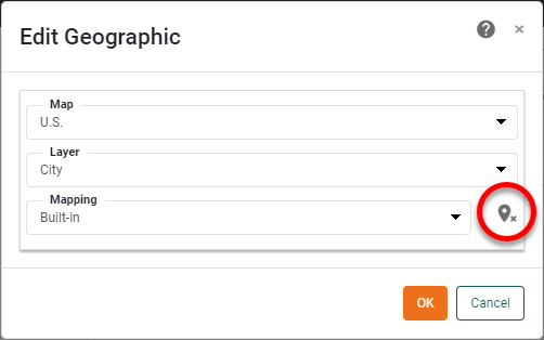 Press the 'x' icon to open the Geographic Mapping dialog box. Here you can manually map any cities that were not automatically recognized.