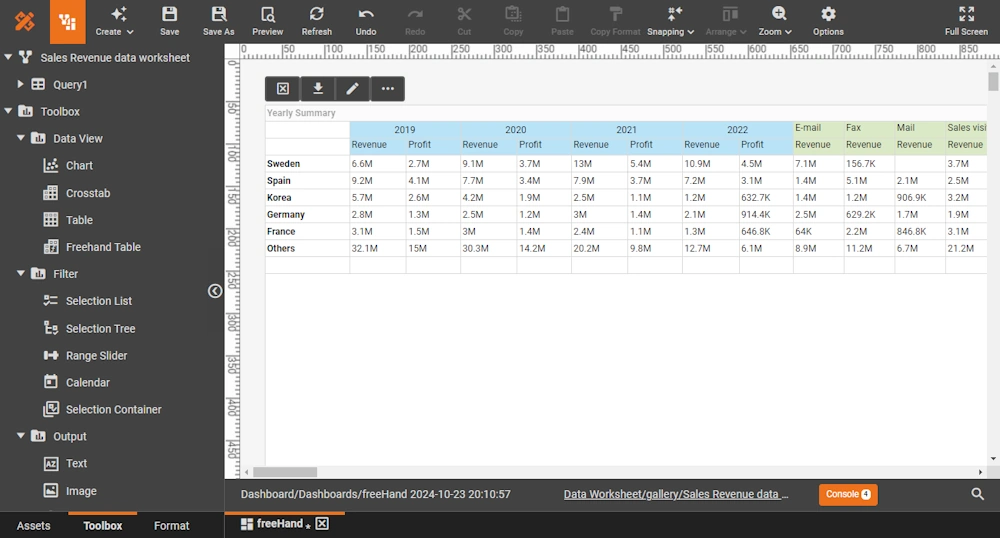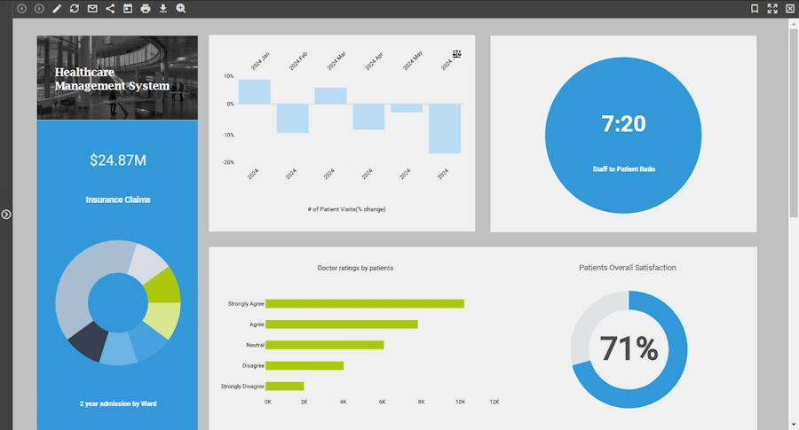 Each visual component's toolbar offers the most common self-service features.